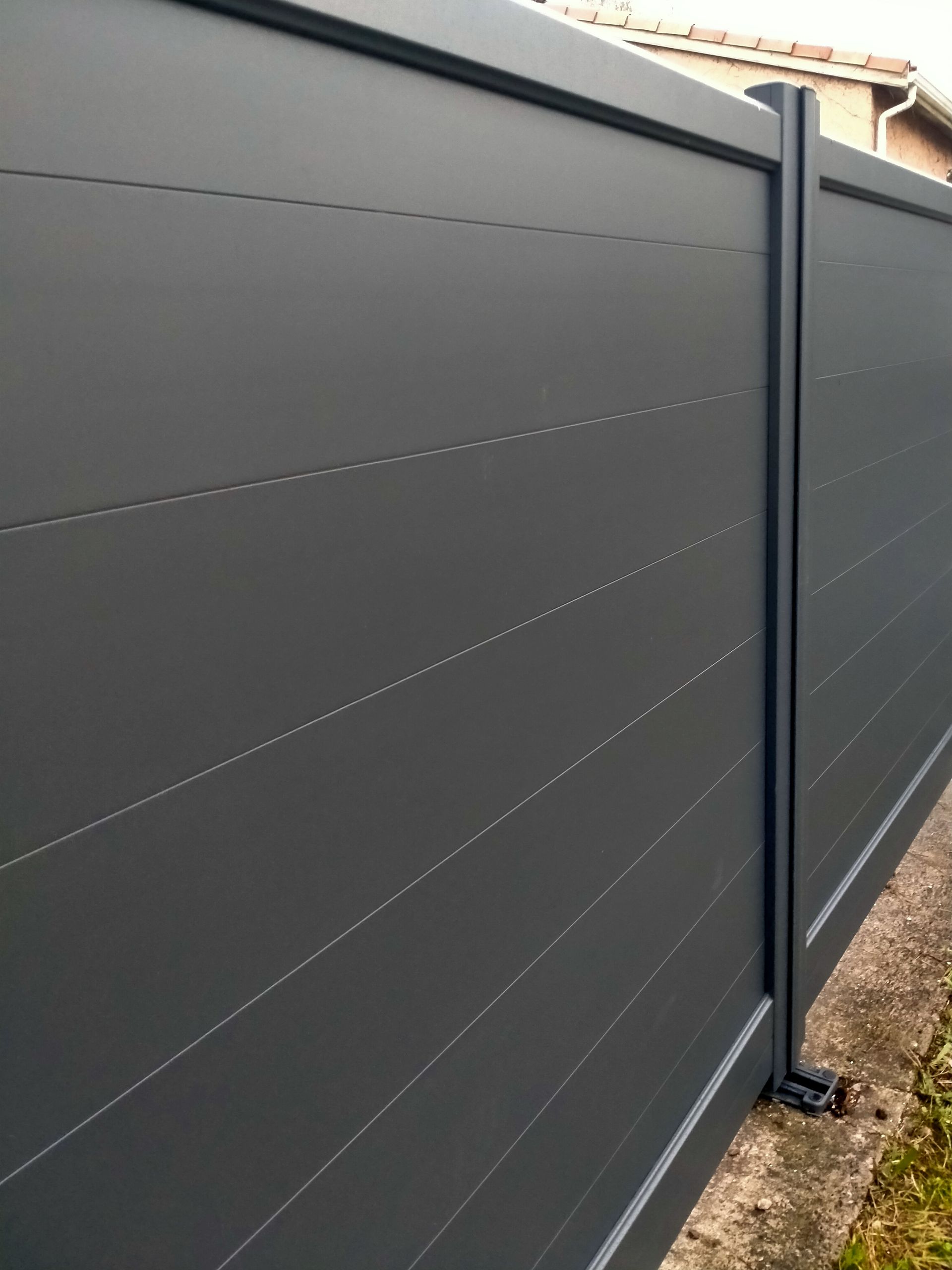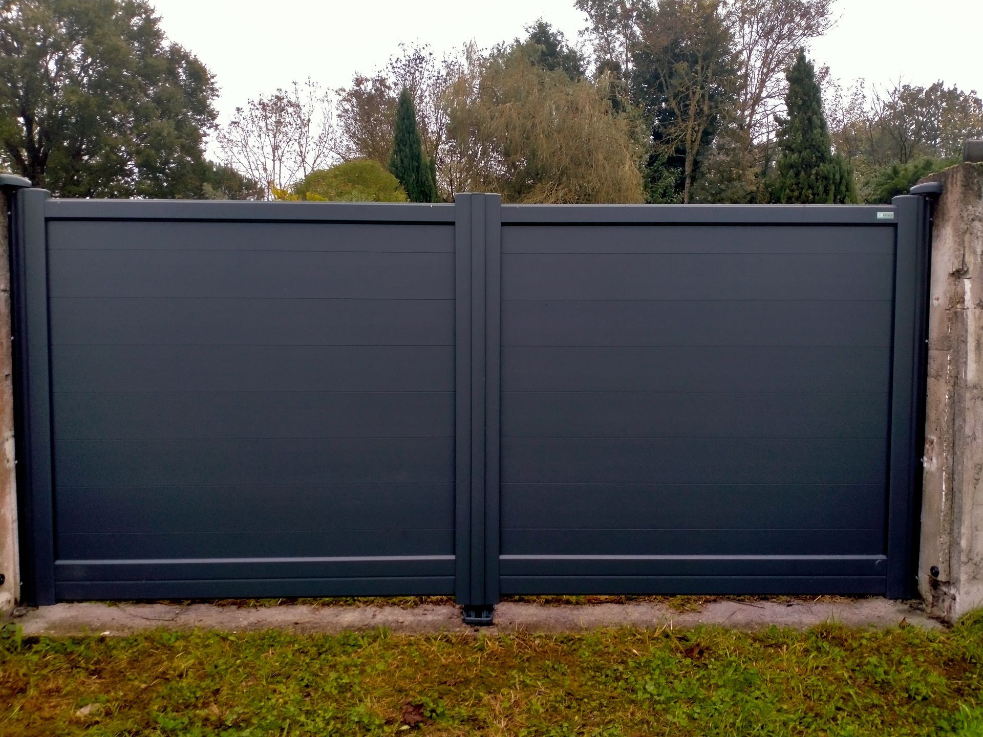 Portail battant aluminium plein motorisé . Couleur gris anthracite