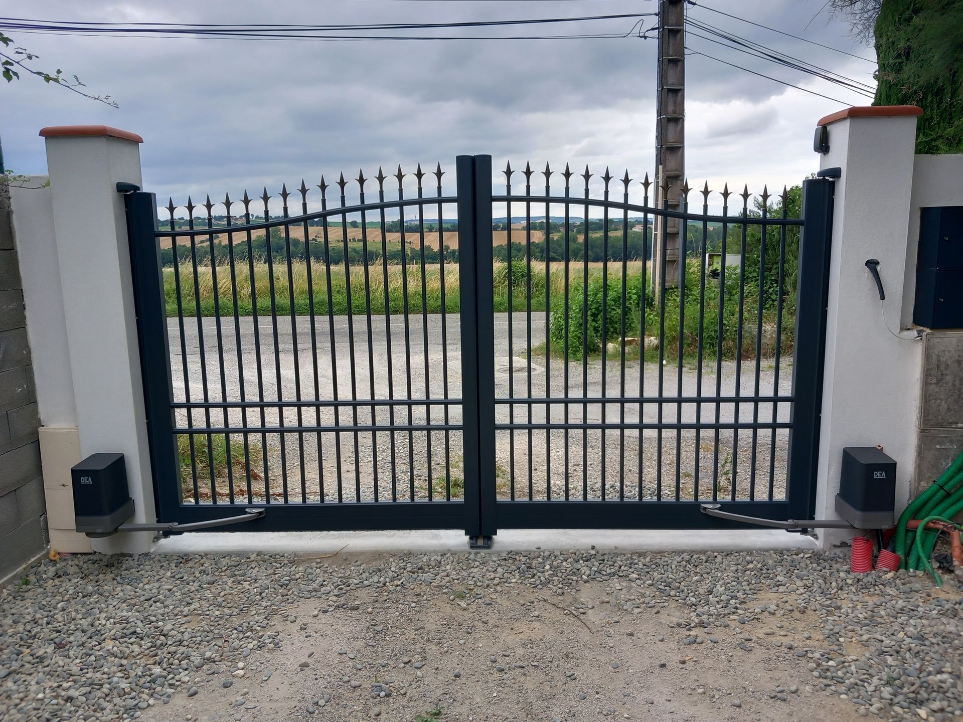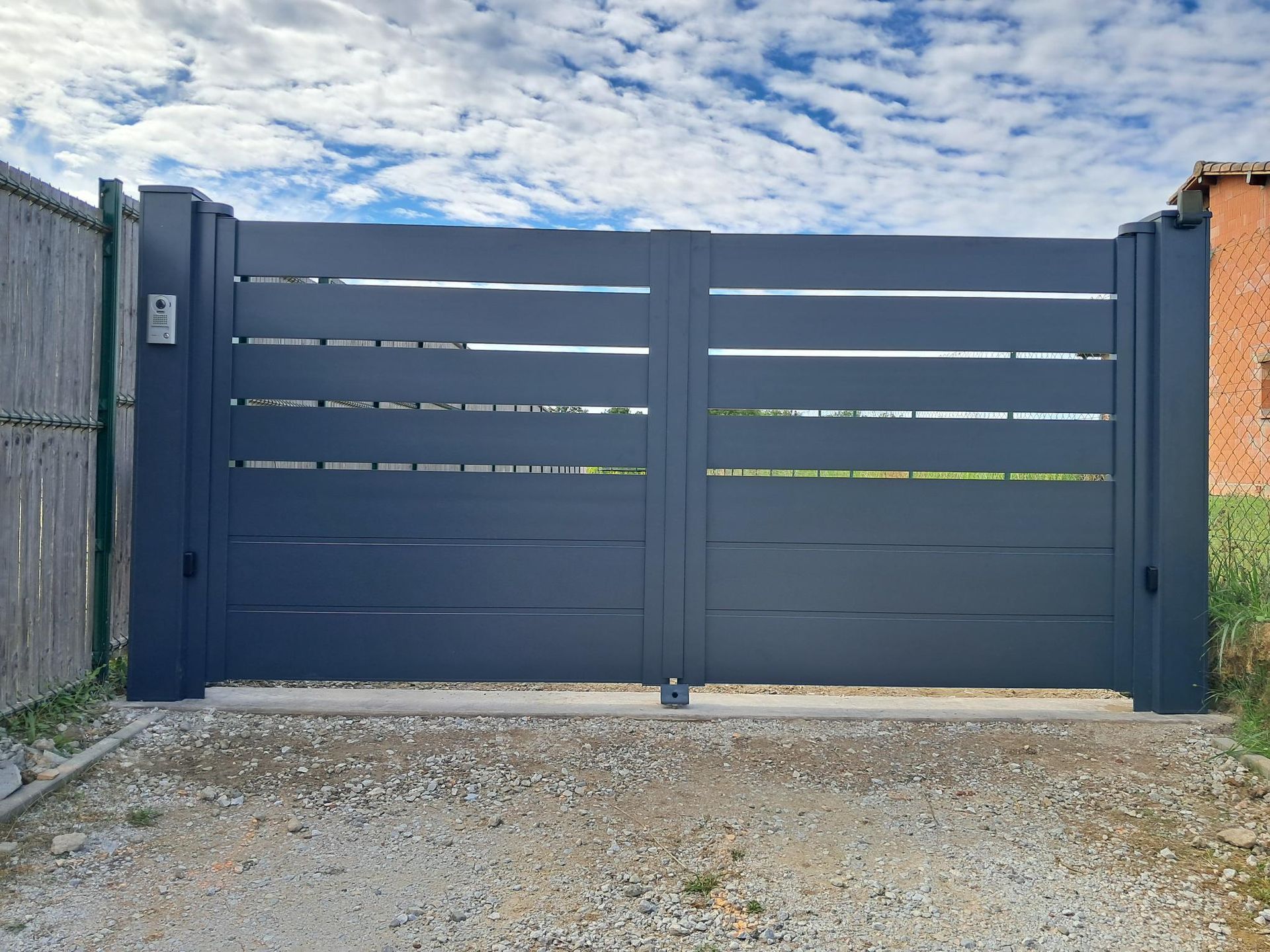 Portail aluminium 2 battants motorisé pour une ouverture vers l'extérieure