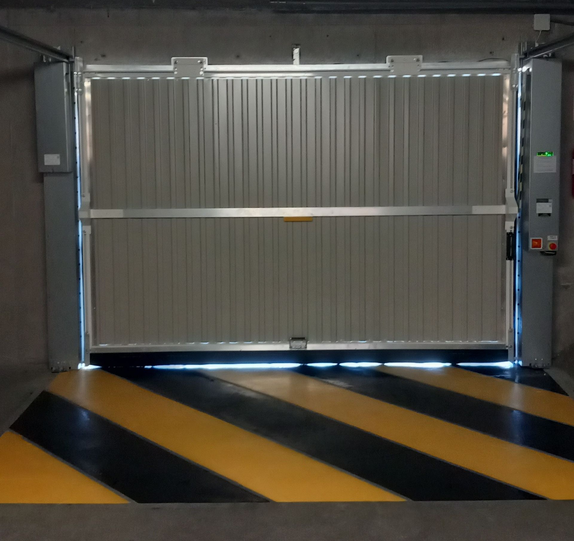 Porte Basculante , entrée d'un parking sous-sol d'une résidence